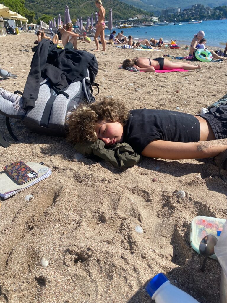 Von Shkodra aus machen wir uns frühmorgens auf den Weg in das Nachbarland im Norden Albaniens. Weil konkrete Reiseplanung nicht immer ganz so unsere Stärke ist fahren wir anstatt, wie von allen wärmstens empfohlen, nach Kotor, sondern nach Budva. Das ist eine kleine Stadt in Montenegro, circa dreieinhalb stunden nördlich von Shkodra, direkt am Meer. Dort liegen wir nur am Strand rum, gehen essen, bummeln entspannt durch die kleine Altstadt und gehen, auf einmal ganz ungewohnt nach den letzten Wochen ohne Meer, im Mittelmeer baden.