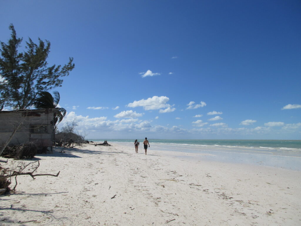 Holbox, unser erster Stop der Reise ist eine autofreie Insel im Norden Yucatáns. Früher war es eine Fischerinsel aber zwischen mai und September kann man dort die größten Fische der Welt sehe und so wurde es in den letzten Jahren zu einer ziemlich touristischen Insel. Leider ist es erst Januar weswegen wir die Fische leider nicht sehe werden.