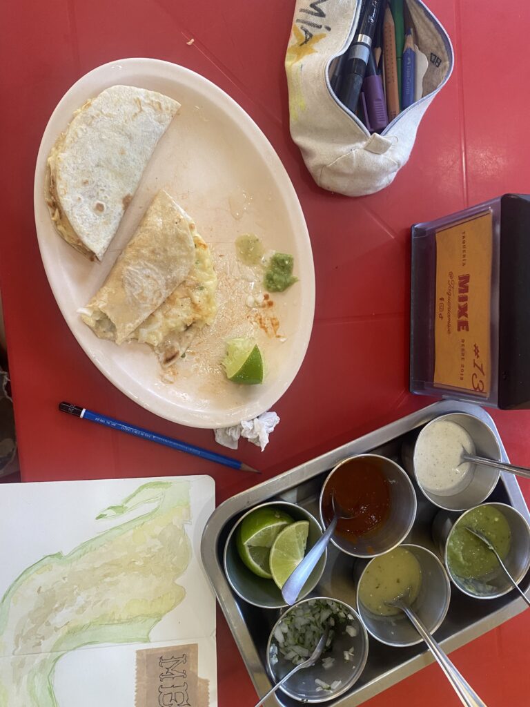 Auf der Insel verbringen wir fünf Tage. Ein Sturm der aus dem Norden zieht runter nach Mexiko und macht so unser Tage auf der Insel sehr windig. Wir verbringen viele Stunden in Cafés und beim kochen auf unserer Dachterasse. Die Tatsache das wir für die sechs Tage keine Küche haben bringt uns dazu Wasser in Kaffeemaschinen zu kochen, den Boden zum Tisch umzufunktionieren und zwei Messer zu viert zu teilen.