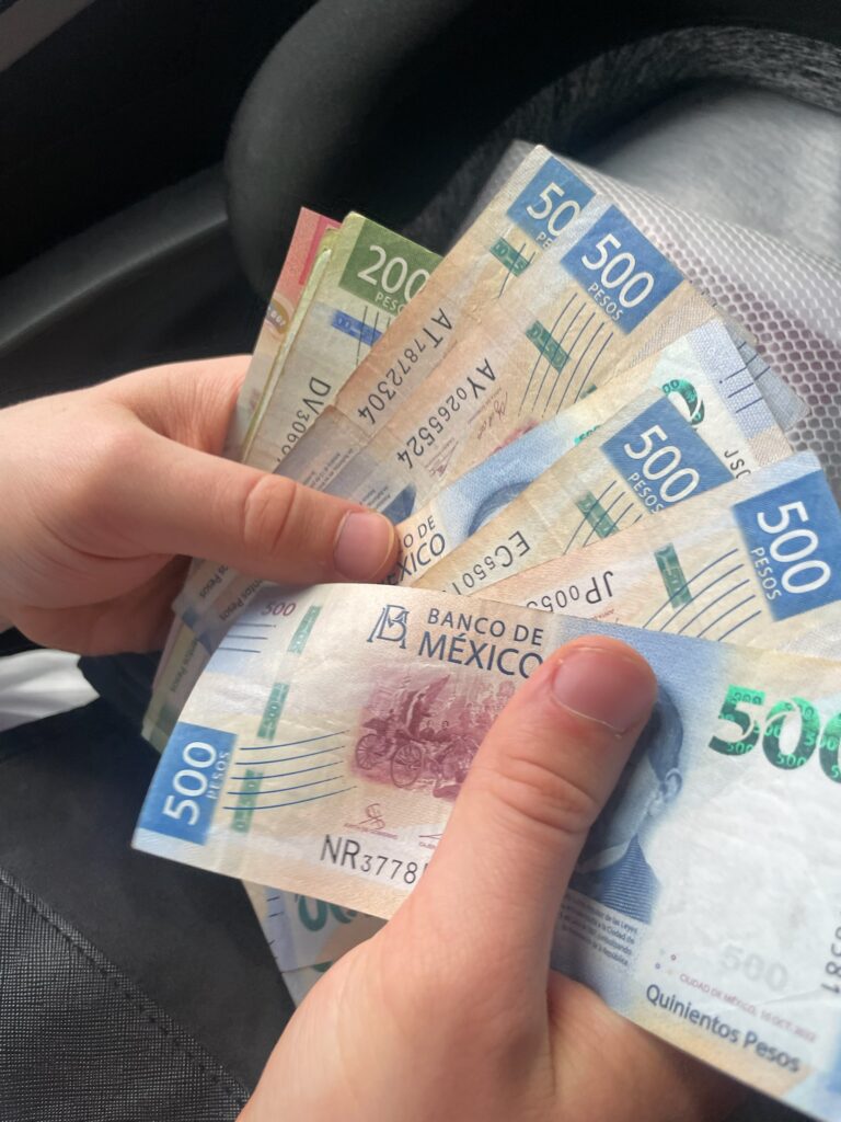 Bevor wir in den Bus steigen, heben wir noch schnell Geld ab und so halte ich kurze Zeit später meine ersten mexikanischen Pesos in der Hand.